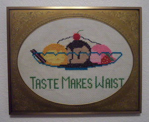 My first-ever cross stitch project. I did this way back in 7th grade home economics. My mother liked it and it now resides at her house.