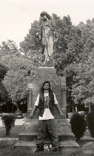 One more from Edgewood Cemetery, Lancaster, Texas. Kangi and The Spider Lady, together at last. I wish there had been a bit more contrast between her and the trees in the background.